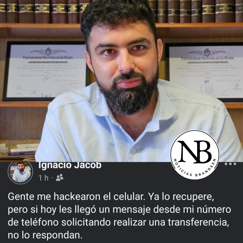 No zafa nadie, cada día son más vecinos que alertan a la comunidad sobre hackeos en sus cuentas de WhatsApp u otras redes sociales. Esta vez, le tocó al jefe del Foro de Seguridad de nuestra ciudad Ignacio Jacob, quien hace unos momentos confirmó que pudo recuperar su cuenta. «Si alguien les pidió una transferencia desde mi número no lo respondan» avisó.