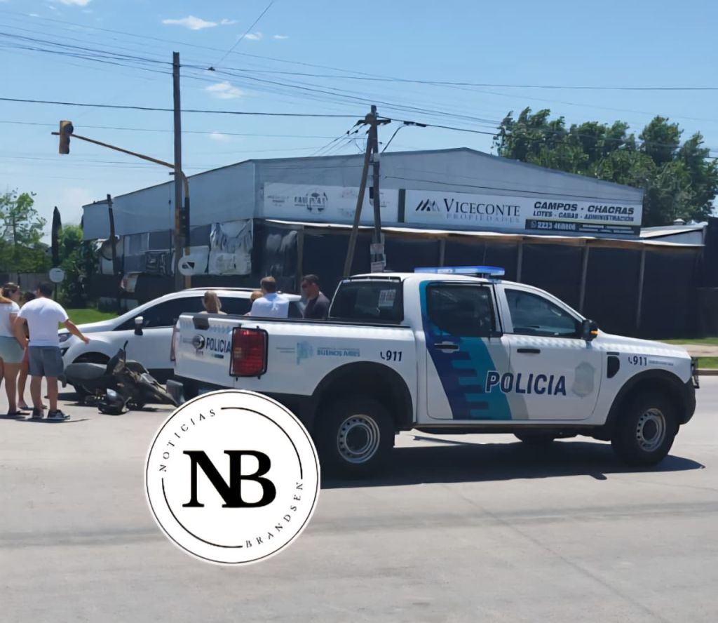 Alrededor de las 13:15 hs. se produjo un siniestro vial entre una moto y un auto en la intersección de Ruta 215 y calle 10.