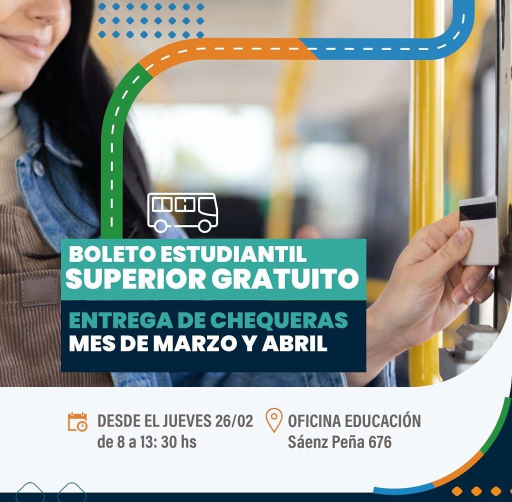 La Municipalidad de Brandsen indicó que, a partir del jueves 26 de febrero, se realizará la entrega de chequeras correspondientes a los meses de marzo y abril del Boleto Estudiantil Superior Gratuito.