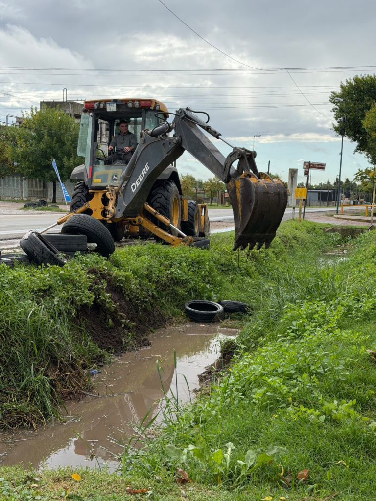En la zona del Hospital y en el centro, sobre Av. Mitre y Ruta 210, se realizaron tareas de limpieza de desagües, retiro de obstrucciones y acondicionamiento de zanjas para mejorar la circulación del agua.
